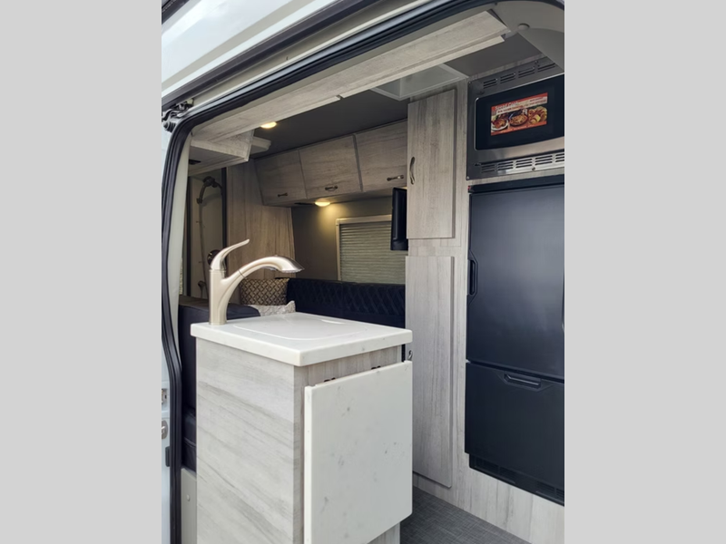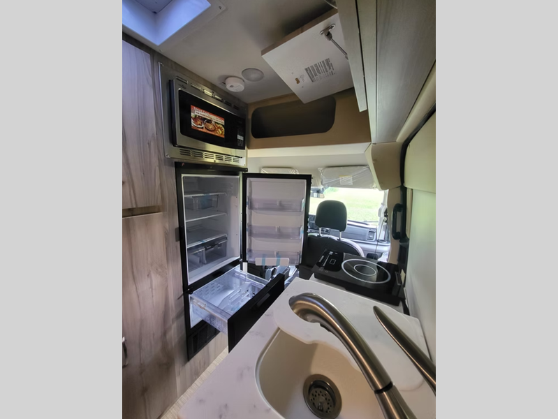 Sleeps 2 Length 21 ft 11 in Ext Width 7 ft 6 in Ext Height 10 ft 1 in Int Height 6 ft 4 in Interior Color Soho, Nizza, Walnut Chiffon Exterior Color White, Silver, Carbon, Black, Blue Hitch Weight 5000 lbs GVWR 11000 lbs Dry Weight 8650 lbs Fresh Water Capacity 30 gals Grey Water Capacity 24 gals Black Water Capacity 8 gals Generator Cummins Onan RV QG 2800I EFI Fuel Type Gas Engine 3.5L Eco-Boost Twin Turbo Chassis Ford Transit Fuel Capacity 31 gals Refrigerator Type Norcold/Thetford Electric Refrigerator Size 6.2 cu ft Convection Cooking Yes Cooktop Burners 1 Number of Awnings 1 Water Heater Type On Demand TV Info Smart TV Awning Info Girard 12' w/Built In Wind Sensor Gross Combined Weight 13000 lbs Shower Type Standard Electrical Service 30 amp Similar Floorplans