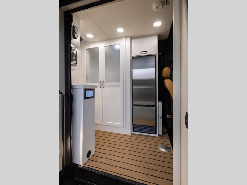 - Li Lithium Battery – 640 amp-hour lithium battery with internal heater, Bluetooth battery management system and remote LCD display, second under hood alternator with multi-stage voltage regulator, Xantrex XC Pro 3,000W inverter/ charger with Bluetooth XC Remote, Xantrex Echo-charge (charges chassis battery while plugged into shore power). Onan Generator not included with Li Lithium Battery option.