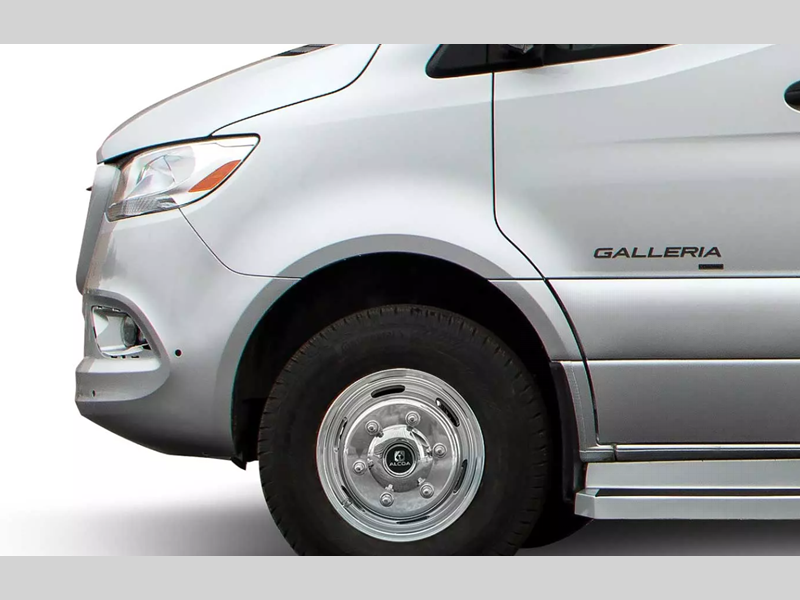 Galleria 24A  Coachmen Galleria Class B diesel motorhome 24A highlights: Wet Bath Rear Bed ... more about Galleria 24A SpecificationsSleeps 2 Length 24 ft 3 in Ext Width 6 ft 11 in Ext Height 9 ft 6 in Int Height 6 ft 2 in Interior Color Cashmere, Fog, Onyx, New Ginseng (Copper) Exterior Color Arctic White, Brilliant Silver Hitch Weight 5000 lbs GVWR 11030 lbs Fresh Water Capacity 27 gals Grey Water Capacity 22 gals Black Water Capacity 19 gals Generator Onan QG 2500 LP Quiet Fuel Type Diesel Engine 2.0L Turbo I4 Diesel Chassis Mercedes 3500 Ext Fuel Capacity 24 gals Wheelbase 170 in Available Beds RV Queen Refrigerator Type Nova Kool 7300 Cooktop Burners 1 Number of Awnings 1 Axle Weight Front 4410 lbs Axle Weight Rear 7720 lbs LP Tank Capacity 51 lbs. Water Heater Type Truma Combi Eco Plus AC BTU 13500 btu TV Info 24" LED Smart TV Awning Info 13' 1" Gross Combined Weight 15250 lbs Shower Type Wet/Bath Shower Electrical Service 30 amp