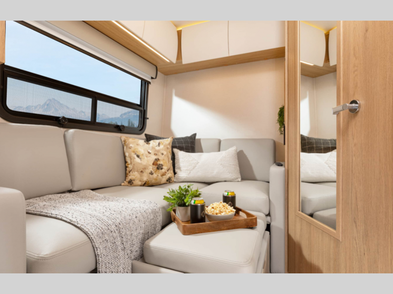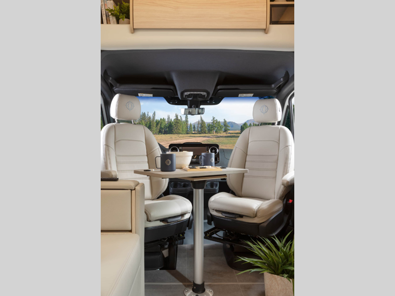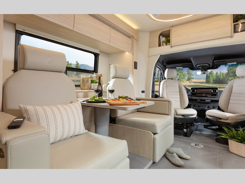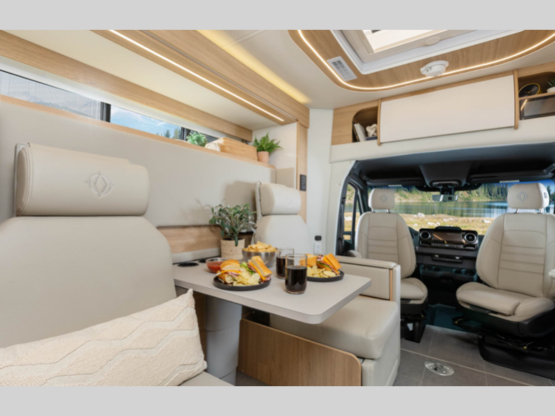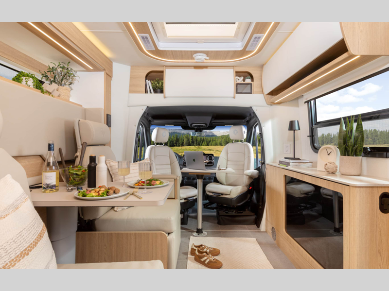 Sleeps 2 Slides 1 Length 25 ft 1 in Ext Width 7 ft 11 in Ext Height 10 ft 6 in Int Height 6 ft 4 in Interior Color Dove, Sand Exterior Color Alpine Mist, Sandstone, Shadow, Atlantic Blue, Carbon, Euro Sport, Granite, Storm Grey, Woodland GVWR 11030 lbs Fresh Water Capacity 25.6 gals Grey Water Capacity 35 gals Black Water Capacity 30.6 gals Fuel Type Diesel Engine 2.0-L Turbocharged I-4 Diesel Chassis Mercedes-Benz Sprinter 3500 Horsepower 208 hp Fuel Capacity 24.5 gals Wheelbase 170 in Available Beds Murphy Torque 332 ft-lb Refrigerator Type Double Door Compressor Refrigerator Size 6.2 cu ft Convection Cooking Yes Cooktop Burners 2 LP Tank Capacity 15.8 gals. Water Heater Type Truma AquaGo Comfort Plus AC BTU 13500 btu Basement Storage 40 cu. ft. TV Info LR 40" Smart TV with Lift Awning Info Powered Legless Box w/Wind Sensor & LED Lights Shower Type Radius Similar Floorplans