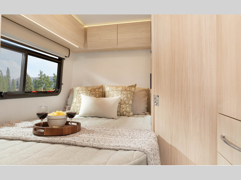 Sleeps 4 Slides 1 Length 25 ft 1 in Ext Width 7 ft 11 in Ext Height 10 ft 6 in Int Height 6 ft 4 in Interior Color Dove, Sand Exterior Color Alpine Mist, Sandstone, Shadow, Atlantic Blue, Carbon, Euro Sport, Granite, Storm Grey, Woodland GVWR 11030 lbs Fresh Water Capacity 36.5 gals Grey Water Capacity 35 gals Black Water Capacity 30.6 gals Furnace BTU 19000 btu Fuel Type Diesel Engine 2.0-L Turbocharged I-4 Diesel Chassis Mercedes-Benz Sprinter 3500 Horsepower 208 hp Fuel Capacity 24.5 gals Wheelbase 170 in Available Beds Full Torque 332 ft-lb Refrigerator Type Double Door Compressor Refrigerator Size 6.2 cu ft Convection Cooking Yes Cooktop Burners 2 Number of Awnings 1 LP Tank Capacity 15.8 gals Water Heater Type Truma AquaGo Comfort Plus AC BTU 13500 btu Basement Storage 31 cu. ft. TV Info LR 27" TV, BR 24" TV Awning Info Powered Legless Box w/Wind Sensor and LED Lights Shower Type Standard -