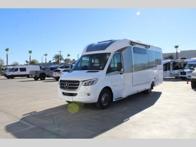 Sleeps 3 Slides 1 Length 25 ft 1 in Ext Width 7 ft 11 in Ext Height 10 ft 6 in Int Height 6 ft 4 in Interior Color Dove, Sand, Clay Exterior Color Euro Sport, Silver, Diamond White, Glacier, Atlantic Blue GVWR 11030 lbs Fresh Water Capacity 25.6 gals Grey Water Capacity 35 gals Black Water Capacity 30.6 gals Furnace BTU 19000 btu Fuel Type Diesel Engine 2.0-L Turbocharged I-4 Diesel Chassis Mercedes-Benz Sprinter 3500 Horsepower 208 hp Fuel Capacity 24.5 gals Wheelbase 170 in Available Beds Murphy Torque 332 ft-lb Refrigerator Type 12V Compressor Refrigerator w/Bottom Freezer Convection Cooking Yes Cooktop Burners 2 Number of Awnings 1 LP Tank Capacity 15.8 gals Water Heater Type Truma AquaGo Comfort Plus AC BTU 13500 btu Basement Storage 26 cu. ft. TV Info LR 27" TV, LR 24" TV Awning Info Powered Legless Box w/Wind Sensor and LED Ligts Shower Type Standard Similar Motor Home Class B+ - Diesel Floorplans