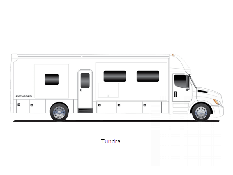 The Renegade Explorer Super C diesel motorhome is a force to be reckoned with! These coaches are built on a Freightliner Cascadia 116 chassis with 525HP and an Allison TRV4000 transmission or Detroit DT12 12-speed transmission. The Explorer's style is very modern and luxurious, and the appliances are top notch.