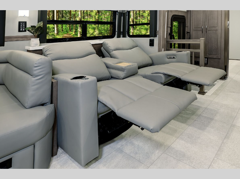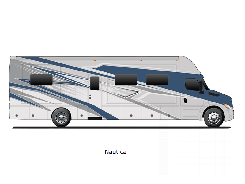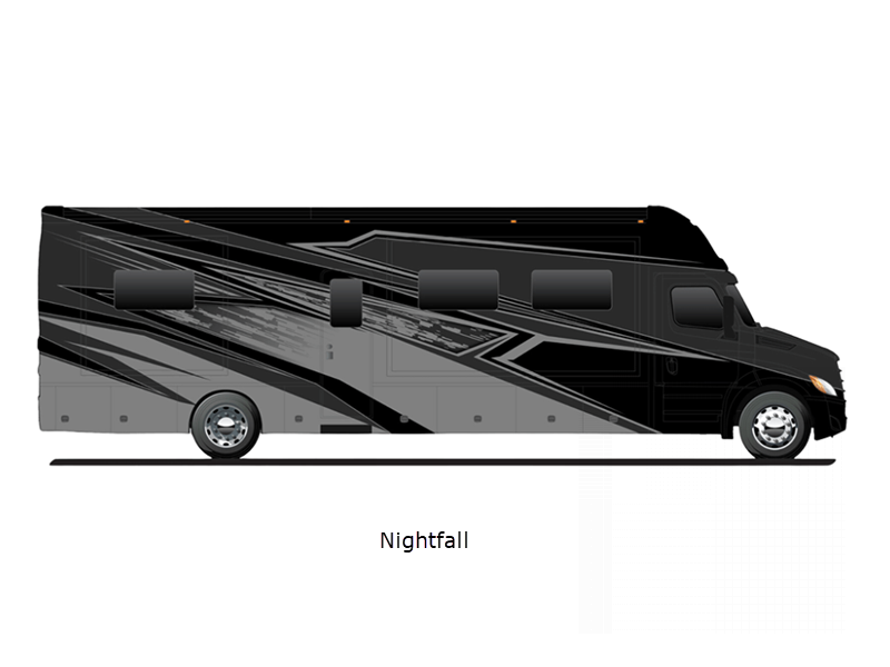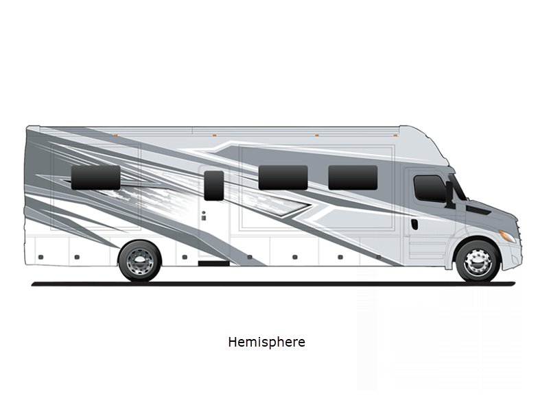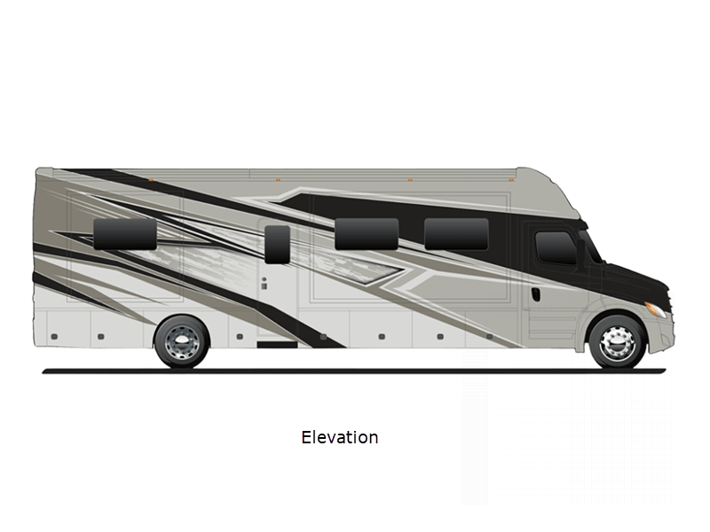 Sleeps 5 Slides 4 Length 38 ft 6 in Ext Width 8 ft 4 in Ext Height 13 ft 1 in Int Height 7 ft Interior Color Denali, Everest, Rainier Exterior Color Elevation, Hemisphere, Nautica, Nightfall, Pole Star, Polaris, Tundra, Atlas LR, Mojave Hitch Weight 20000 lbs GVWR 41000 lbs Fresh Water Capacity 150 gals Grey Water Capacity 75 gals Black Water Capacity 75 gals Generator 8kW Onan Quiet Diesel Fuel Type Diesel Engine Detroit DD13 Chassis Freightliner Cascadia Horsepower 525 hp Fuel Capacity 120 gals Available Beds RV King Torque 1850 ft-lb Refrigerator Type Residential French Door Stainless Refrigerator Size 18 cu ft Convection Cooking Yes Cooktop Burners 2 Number of Awnings 1 Water Heater Type 450D AquaHot Hydronic AC BTU 30000 btu TV Info 50" 4K Smart LED TV LR, 32" 4K Smart LED TV BR, 43" 4K LED TV Ext. Awning Info Girard 2-Stage with LED Lights Shower Type Standard Electrical Service 50 amp Similar Floorplans