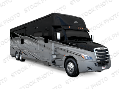 Sleeps 6 Slides 4 Length 44 ft 11 in Ext Width 8 ft 4 in Ext Height 13 ft 6 in Int Height 7 ft Interior Color Nordic, Pinnacle, Slate Exterior Color Eclipse, Meridian, Nebula, Solstice, Zenith, Polaris, Tundra, Atlas LR, Mojave Hitch Weight 30000 lbs GVWR 58000 lbs Fresh Water Capacity 150 gals Grey Water Capacity 75 gals Black Water Capacity 75 gals Generator 12.5 kW Onan Quiet Diesel Fuel Type Diesel Engine Detroit DD16 Horsepower 600 hp Fuel Capacity 120 gals Available Beds RV King Torque 1850 ft-lb Refrigerator Type Samsung Bespoke with Family Hub Refrigerator Size 23 cu ft Convection Cooking Yes Cooktop Burners 2 Shower Size 42" x 35" Number of Awnings 2 Water Heater Type Aqua Hot 600D AC BTU 45000 btu TV Info LR 50" 4K Smart LED TV, BR 43" 4K Smart LED TV, Ext. 43" Smart LED TV Awning Info Roof Mounted Girard 2 Stage Lateral Arm w/LED Lights Washer/Dryer Available Yes Shower Type Standard Electrical Service 50 amp Similar Motor Home Super C - Diesel Floorplans