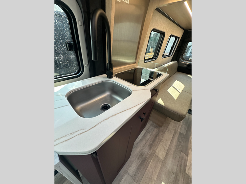 Sleeps 2 Length 20 ft 9 in Ext Width 6 ft 11 in Ext Height 9 ft 5 in Int Height 6 ft 2 in Hitch Weight 2150 lbs GVWR 9350 lbs Cargo Capacity 1700 lbs Fresh Water Capacity 31 gals Grey Water Capacity 14 gals Black Water Capacity 4 gals Tire Size LT225/75R16E Black Wall Furnace BTU 14300 btu Generator Underhood Fuel Type Gasoline Engine 3.6L V6 24 Valve Chassis Ram ProMaster 3500 Extended Van Horsepower 280 hp Fuel Capacity 24 gals Wheelbase 159 in Available Beds Two Twin, King Conversion Refrigerator Type 12V Refrigerator Size 3.1 cu ft Cooktop Burners 2 Number of Awnings 1 LP Tank Capacity 5.9 gals Water Heater Type Truma LP Combi AC BTU 13000 btu TV Info Coach 24" Smart TV Awning Info 13' Power Gross Combined Weight 11500 lbs Shower Type Wet/Bath Shower Electrical Service 30 amp Solar Wattage 200 watts -
