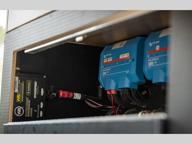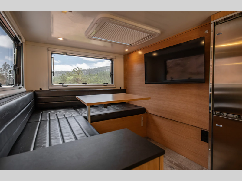 You'll find the largest garage space in the Class B industry, allowing you to bring along more gear and even two bikes, plus there are rear Molle panels outside, along with an electric awning, an exterior shower, and a spare tire with a carrier. The impressive storage space continues on inside with massive upper and lower cabinets, Rossmonster's largest refrigerator/freezer, and a spacious wet bath with its own sink included!